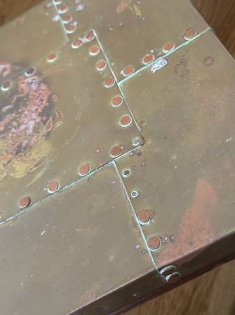 ~no major damage…only distress and minor scuffing here and there, brass top can be cleaned. Leaving that up to buyer
