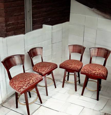 Tags: vintage bar stools, swivel stools, upholstered seating, traditional bar chairs, wood and fabric stools, mid century style, counter height, home bar furniture, classic design, Silver Lake