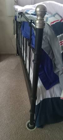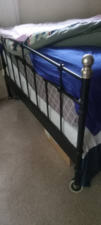 Ikea Queen size SVELVIK metal tubular Post and Headboard with metal support under frame in like new condition from the guest room. This frame will disassemble fast and takes a minutes to reassemble with no tools. Bedding, Mattress and Box Springs not included, if add's up it's available!