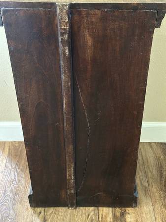 31”H x 18”L x 11.75”W Split in the back - does not affect integrity. Please see last picture. Pick up Lyons & Wiley, Newhall Cross Posted