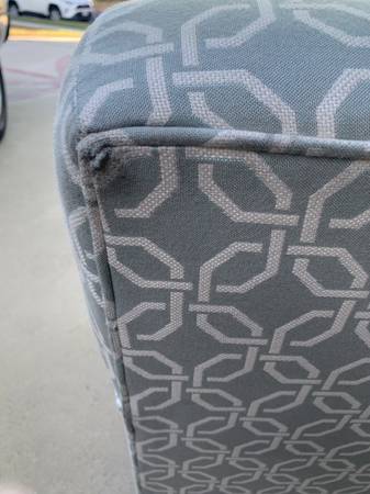 Two 2012 Ethan Allen fully upholstered accent chairs with wood legs , Great fabric but needs cleaning or a great upholstery project , super comfy and transitional can go with many styles