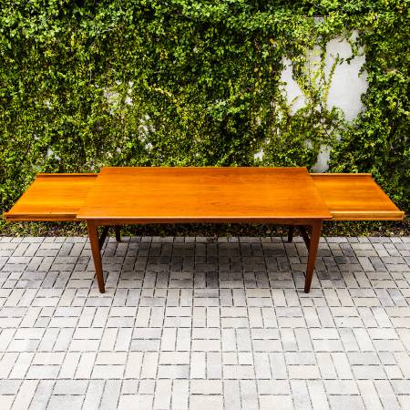 The grain on the leaves is orthogonal to the main surface, adding visual texture to the table in expanded form.