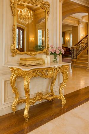 Beautifully carved solid wood base with a real marble top — it’s the perfect statement piece for your entryway or living room.