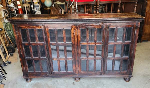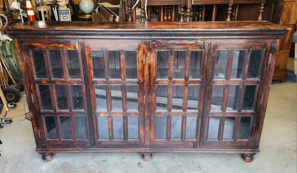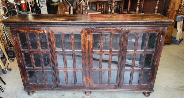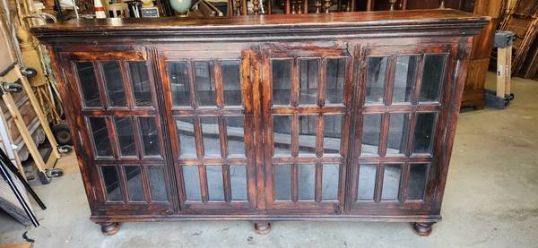 Z Gallerie Planters Buffet. Wood with Glass Panels. Modern Mission Style with Solid Wood and Glass Panels.