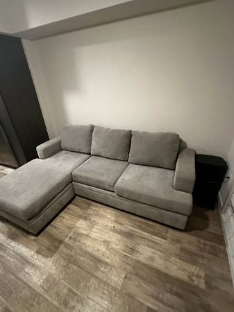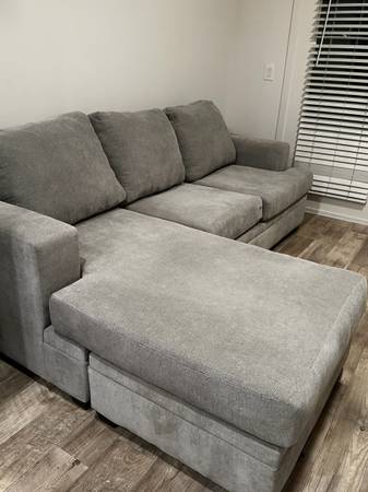πΊ Gray Sectional Sofa β Good Condition Selling a comfortable gray sectional sofa with a reversible chaise (can be placed on either side). Itβs 1years old and has been gently used. Great for...