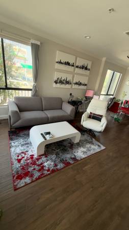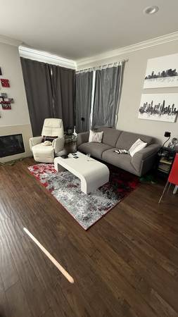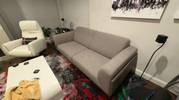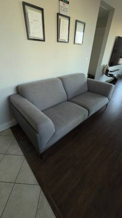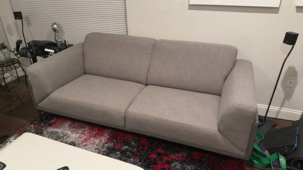Selling a sofa from a model house. The condition is good as this was just used to model homes! Comfortable, sturdy, and easy to lounge in. It’s from Modani Furniture and the quality is top notch.