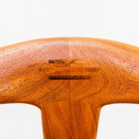 With its softly flowing curves, elegant tapers, and precisely sculpted back, the form is both organic and intentional. It combines the elegant simplicity of Wegner's "The Chair" with the aesthetic flourishes of his "Cowhorn" design.