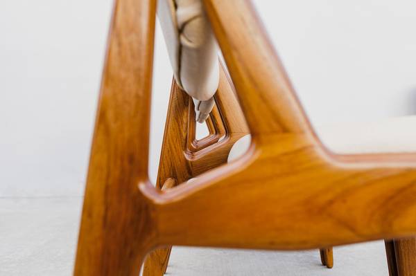 Ella is constructed from old growth teak of the highest quality, with a beautiful amber color and vivid grain patterns. The design combines angular forms with rounded edges for an appearance that is both dynamic and understated.