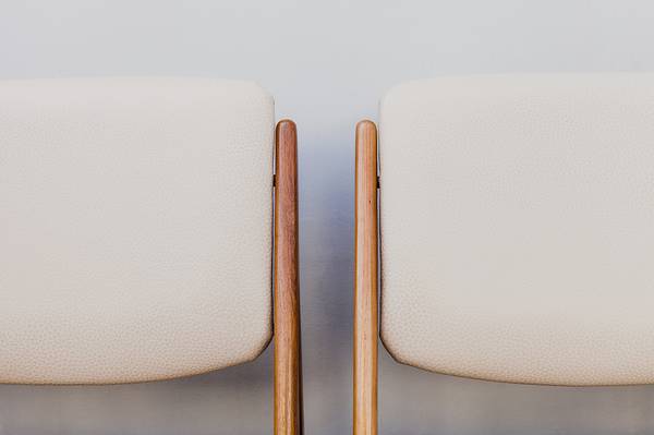 The backrests connect to the frames with hidden hardware that allows them to swivel so they match the angle of your back in any seating posture.