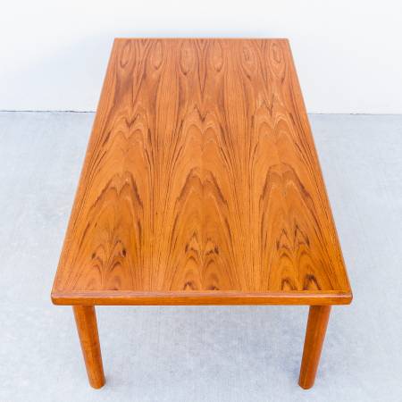 A simple and minimalist design that showcases the beautifully bookmatched teak grain patterns across the top.