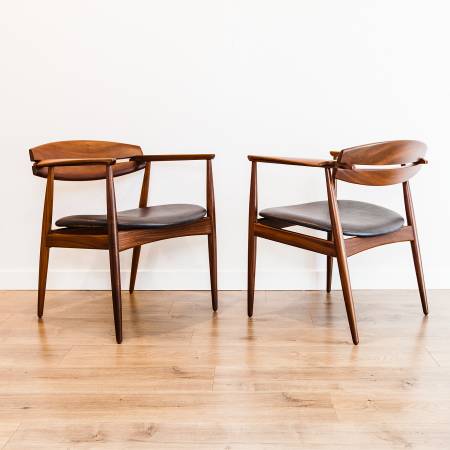 A delightfully futuristic pair of mid century modern armchairs by John Sylvester & Jørgen Matz for Bramin, made in Denmark c. 1960s.