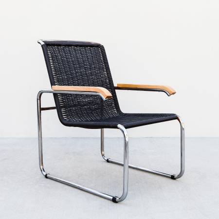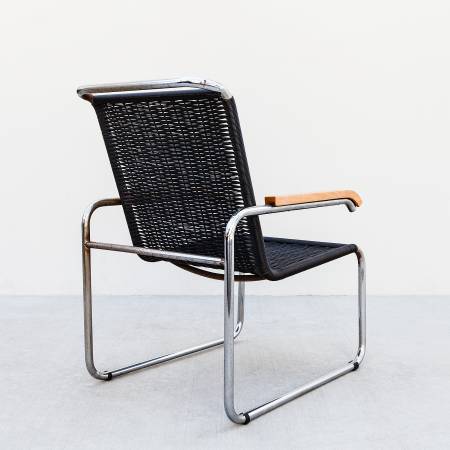 The frame is made from a single line of bent tubular steel. This gives the S35 a wonderful bounce, with the seat and armrests flexing independently of each other. Quite comfortable despite its somewhat spartan appearance.