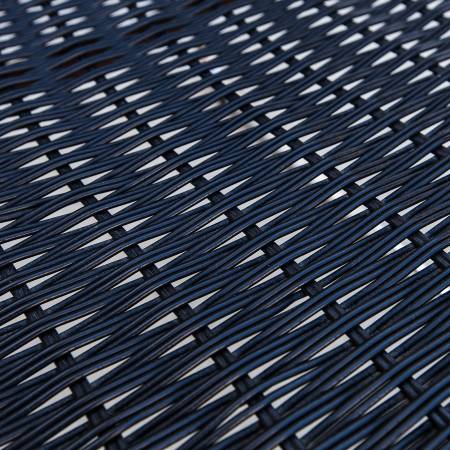 The black PVC weave remains fully intact and the beechwood arms were recently refinished. The frame has accumulated plenty of rust (the chair sat outdoors, exposed to the elements for years) and the chrome plating has worn off in some spots.