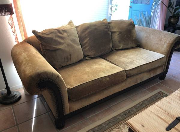 Plush, comfortable chenille sofa. Please bring your own help to carry and load.