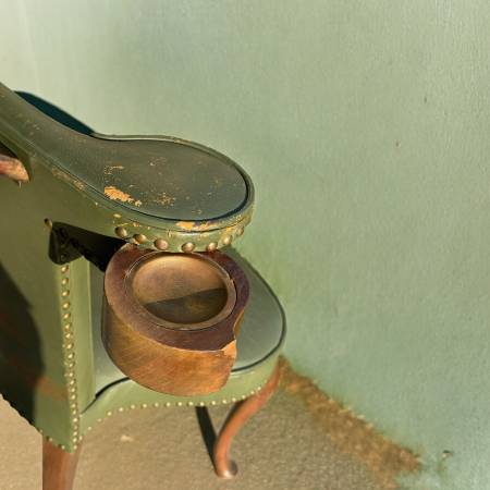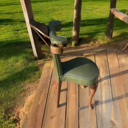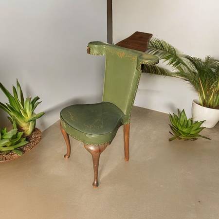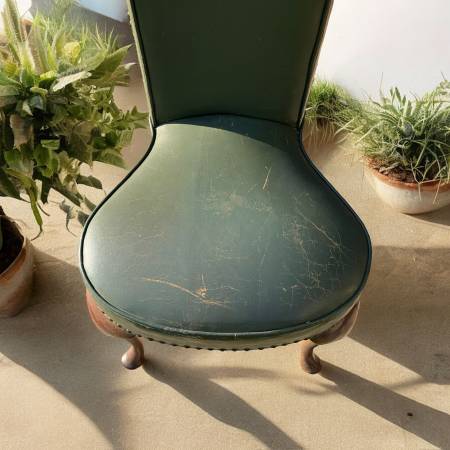 Tags: museum reading chair, antique library chair, 18th century armchair, rare collector chair, vintage green leather, cabriole leg chair, heirloom antique chair, historic furniture find, museum quality seating, rare antique chair