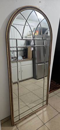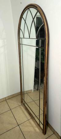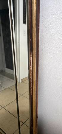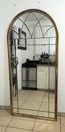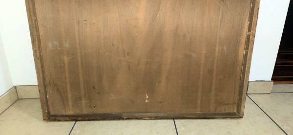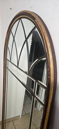 Manufactured in Italy by LaBarge. Vintage late 70s to early 80s. Wear on the painted frame is light to medium and consistent with age. Frame is made of heavy wood (likely mahogany). Beveled mirrors are in excellent condition with no scratches, spots or cracks. Missing paper label on back that says, Made in Italy, Order/Style: 8120/BLS. See pictures for an appraisal comparison.