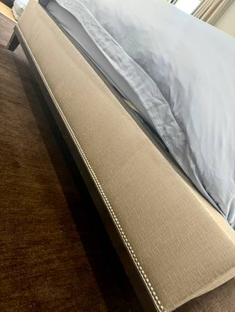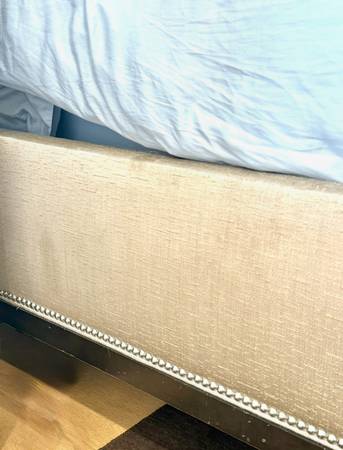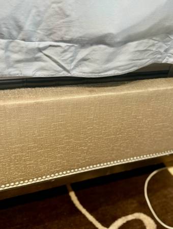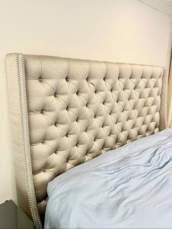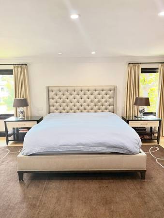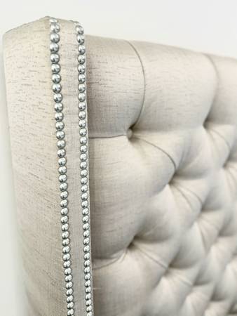 Tags: kravet bed frame, cal king headboard, tufted cal king bed, luxury upholstered bed, champagne fabric bed, designer bedroom frame, high end bed, nailhead trim bed, custom king bed, transitional style bed, designer bed, contemporary bed, cal king bed set