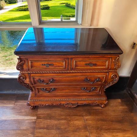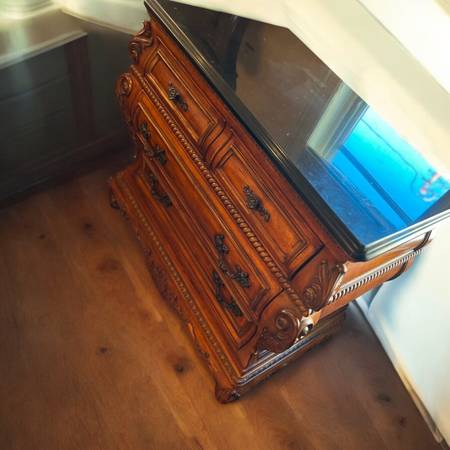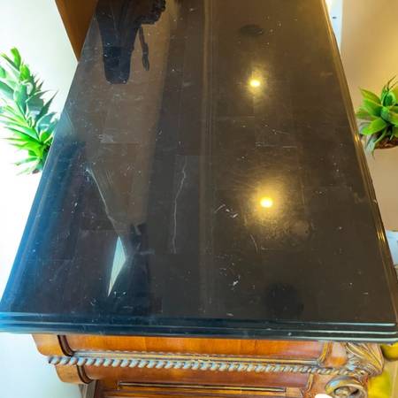 ~2 marble top nightstands; 40”w, 23”d, 34”h