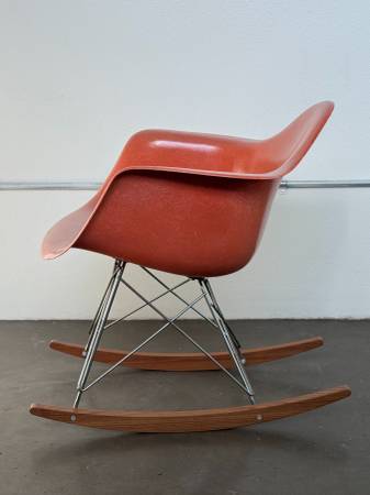 Here is a vintage fiberglass RAR rocking shell chair by Charles and Ray Eames. The shell is in very good restored condition with new shock mounts and paired with a newer (authentic) walnut rocker base. Electronic payment and delivery available. Thank you!