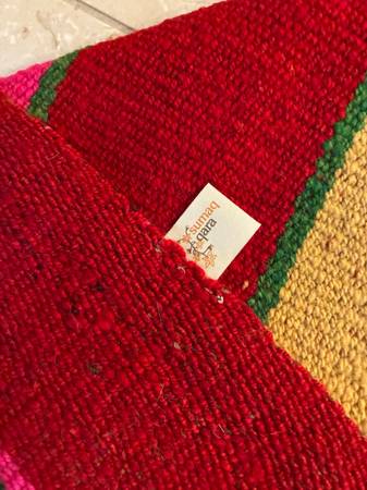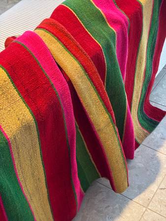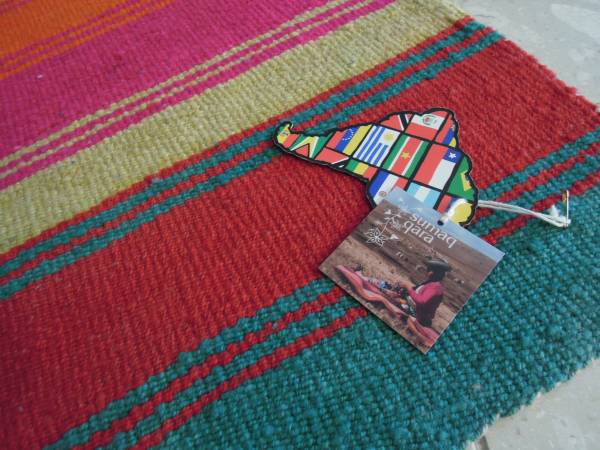 Unique, colorful and one of a kind Sheep-Wool Frazada Rug / Throw Handwoven in the Andes Mountains of Peru by local artisans using traditional weaving techniques and spending many days to create each piece, this local artisans are sponsored and supported by Sumaq Qara (which means “beautiful work” in Quechua) that is based in Peru and is a women-led cooperative that creates stunning handmade accessories while providing fair wages, training, and steady employment to women in marginalized communities.