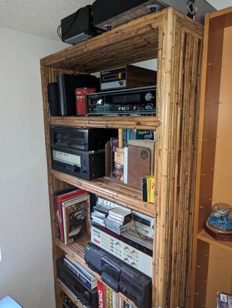 Vintage MCM bamboo etagere shelf. Very solid built and in very good condition. 78" high x 38" wide x 15" deep