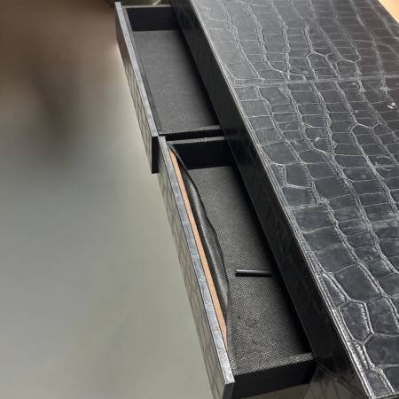 Tags: Timothy Oulton desk, Crocodile console, Black luxe table, Designer side table, Entryway console, Modern leather desk, Luxury accent table, Embossed black desk, Statement hallway table, High end furniture