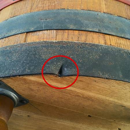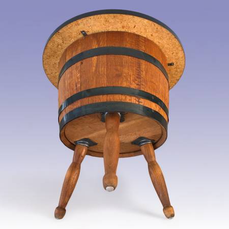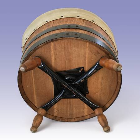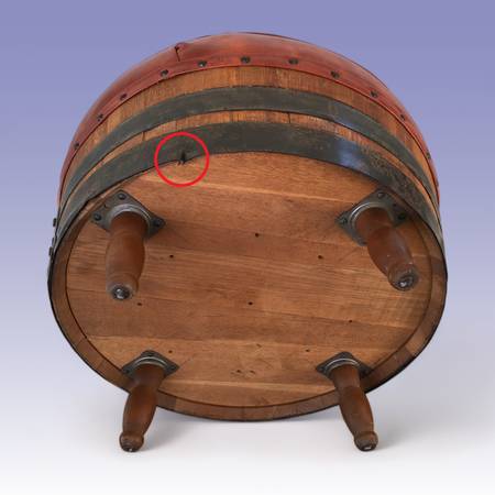 24” high (from base to top). Barrel: 7” in diameter (at its widest), 10¾” high, 4 metal straps.
