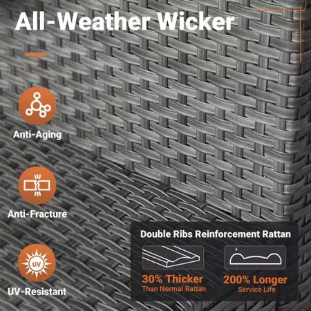 High-quality PE wicker: Meticulously hand-woven by artisans with 8 years of experience in rattan craftsmanship, this all-weather PE rattan is celebrated for its durability and requires minimal upkeep, guaranteeing enduring elegance with ease.