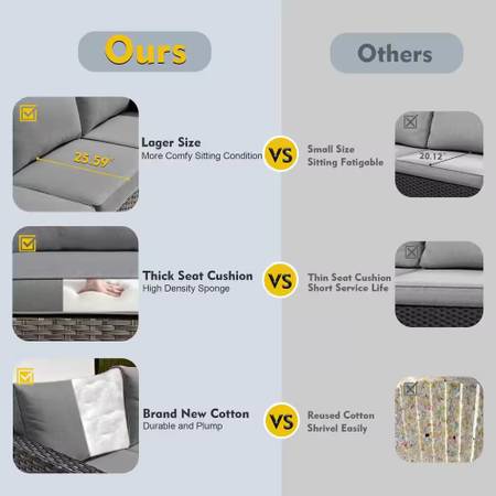 High-resilience sponge: Each seat cushion, boasting a substantial thickness of 3.54 inches, delivers exceptional bounce-back capability. After removing from vacuum packaging, they gently expand, crafting a luxurious and comfortable sitting experience, ensuring relaxation with each use.