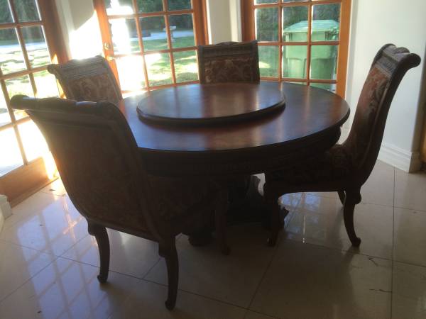 Round dinning table (60 inches in diameter) in good condition $385 Magic Chef chest freezer + user's manual in working condition $135