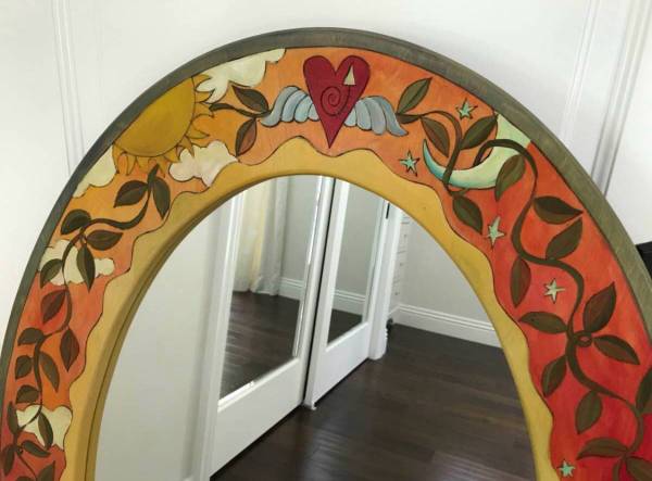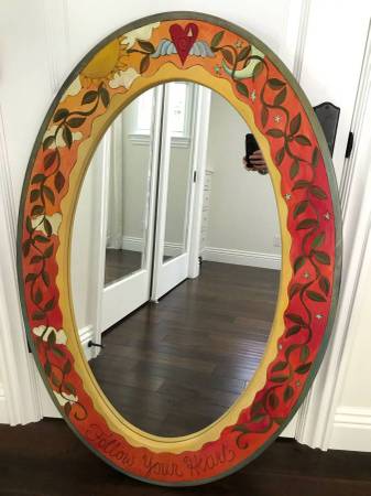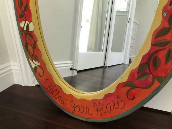 Hand crafted "Follow Your Heart" mirror by renowned artist, Sticks by Sarah Grant