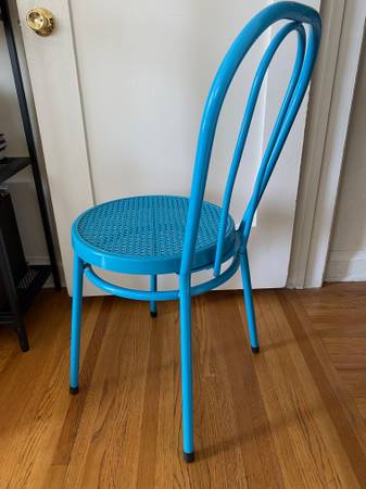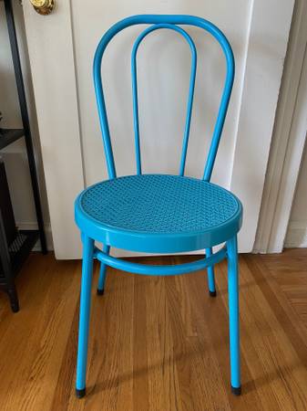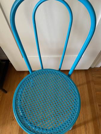 Great condition chair. Made of metal and plastic, it is in rattan style. From animal-free, smoke-free home. CASH ONLY. PICKUP ONLY Specs: 35 inches - Height (back of chair) 16 inches - seat width