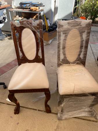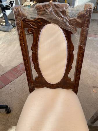 Two side chairs ready for a new fresh fabric of your choice. The wood is finished and beautiful and never been used . Calls only please to avoid the scum scammers! 818-391-four three eight 9