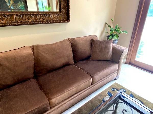 I also have many yards of extra fabric that matches this sofa for sale separately, if you wish to make more pillows out of it, or recover other furniture pieces in your home to match this sofa. The fabric retails for $65 per yard and I will throw in however many yards you want for just $10 per yard.