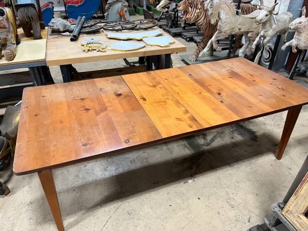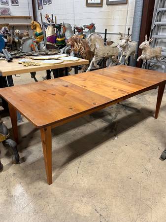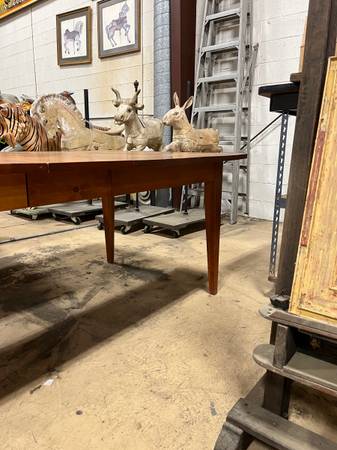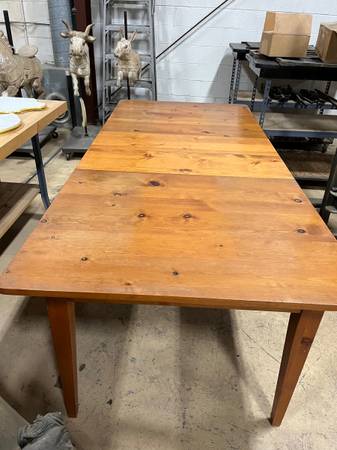 Nice old kitchen table with NO CHAIRS. Table is 91.5" x 42" x 30" tall. Looks like it's solid Pine.