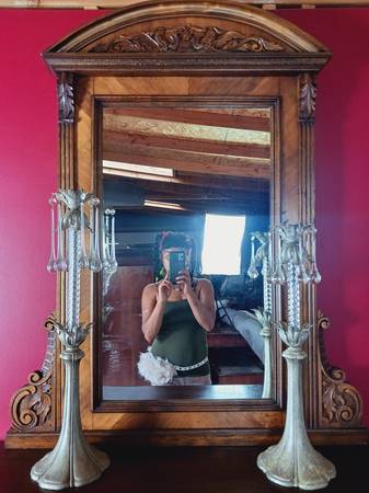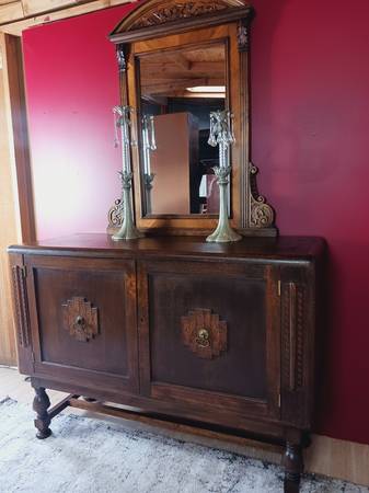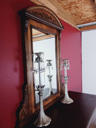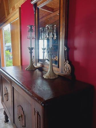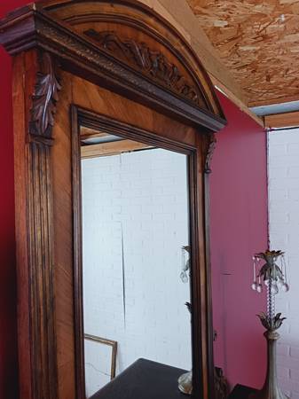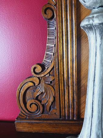 Hand carved all wood flower designs and intricate eagle code of arms at the center piece atop. Complete with back wiring.for hanging on the wall if you