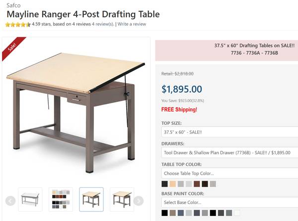 Mayline Ranger HUGE metal and wood drafting table for $200