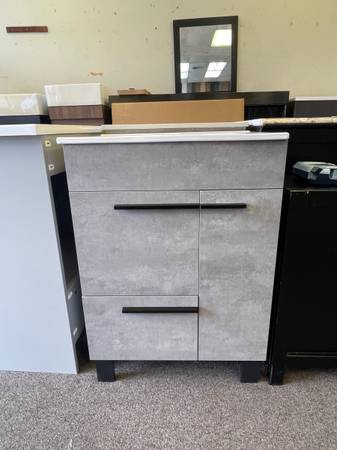 Brand new Modern design with grey color 24” wide 18.5” depth Black handles Porcelain top No damages Plumbing ready Very spacious Nobody beats my prices!