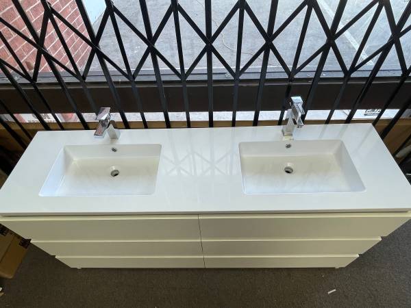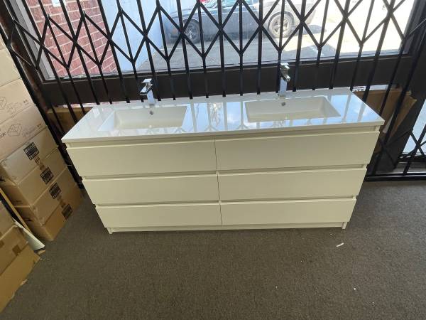Brand new Double sink No damages Plumbing ready 72 inch Depth of 20” Comes with toe kick Available in black as well Nobody beats my prices!