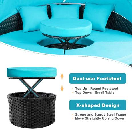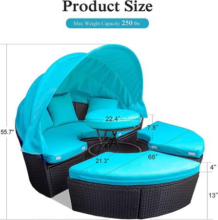 One of the round cushions has a rip in it that can easily be repaired. the rest of it is in great condition.