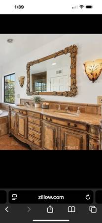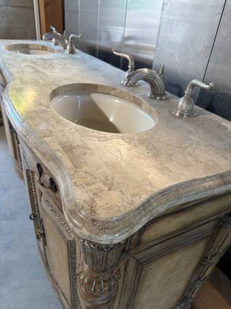 vanity cabinet with two sinks and faucets include marble top