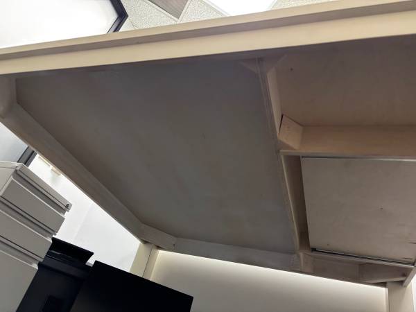 We are moving offices and have this Square Solid Pine Table/Desk for sale. It's Custom Made, Painted Off White, measures 60X60X31 inches and has to go by month end! It has a Glass Top that is optional and not attached. As a Dining Table, it seats 8 comfortably, two on each side. As a Large Office Desk, it has a Slide-Out Surface for maybe a Keyboard or Controller. If you're looking for a unique piece of furniture for your home or office, this is it! It cost us over $1,500 when we had it made! It's Solid and Heavy, about 250-300 pounds, bring a friend, dolly/s and a truck! Can only be moved out of this office weekdays between 5-7pm. Thank you for looking and Happy Shopping!
