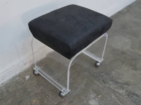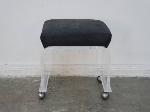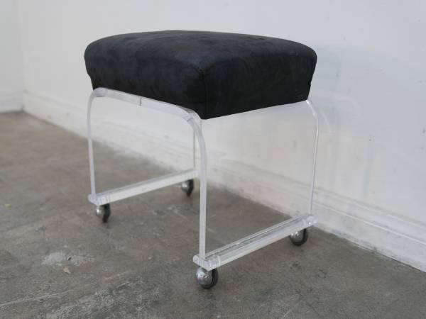 Vanity Stool Lucite Base Black Cushion 21" W x 17" D x 21.5" H Call us at