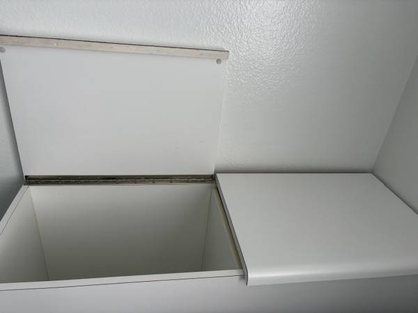 Nice tall Formica headboard. Two lids allow access into storage space. 15" Deep x 41.5" Wide x 32" Tall Beautiful condition