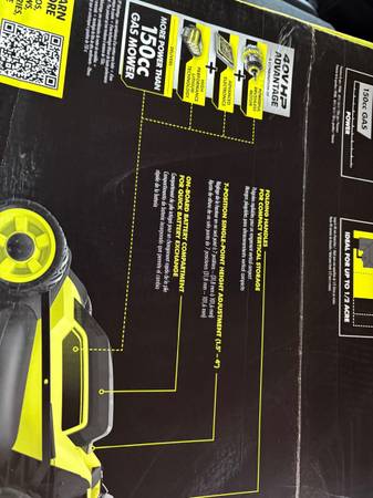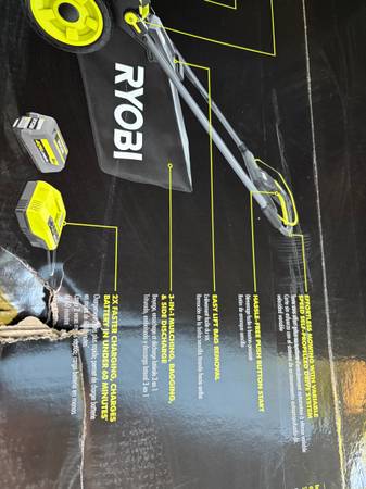 Ryobi 40 V self-propelled lawnmower brand new inbox never used comes with a battery and charger. If interested contact me, feel free to leave your number. I will call you or text you whichever you...