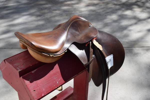 #16 Quality Nice Saddlery Brand English saddle size 16 inch seat, Two Tone dark brown color . w/Stirrups