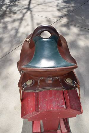 #10 Specialized Saddles Trailmaster Saddle English 17" 2 Tone Green Saddle w/ Concho Silver Buttons w/Stirrups
