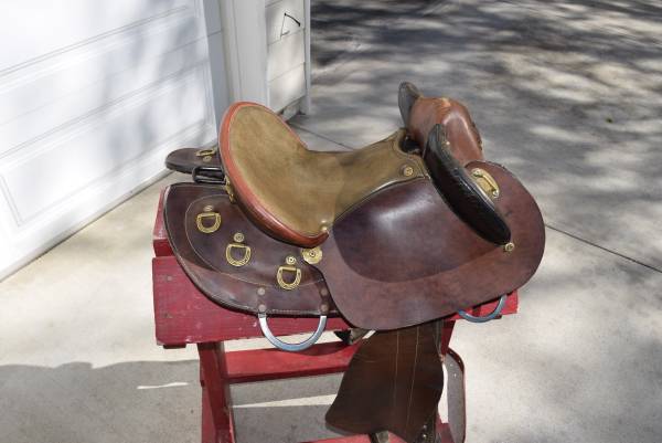 #14 Ord River Bronco Poley Swinging Fender Saddle Brass Horse shoe Rings 13" w/Stirrups