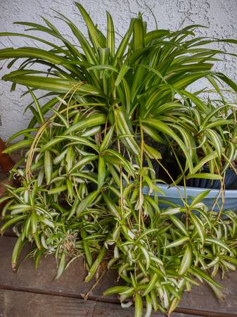 Spider plants (Chlorophytum comosum), also known as airplane plant, St. Bernard's lily, spider ivy, or ribbon plant.