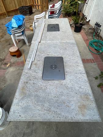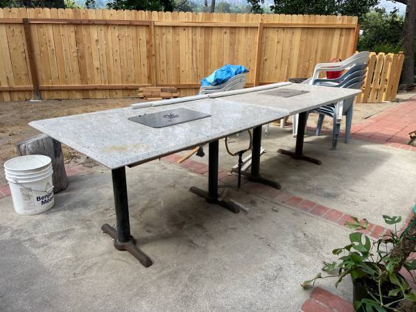 Grade BBQ Grill Table with Stone Top and Gas Hookup, $595 Each Dimensions: 54" (L) x 36" (W) x 30" (H) Do your family BBQ. 2 tables are available Excellent condition!